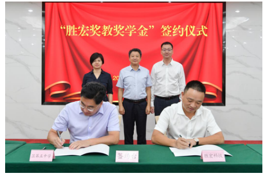 签约仪式上,CEO赵总代表公司与惠阳五中付校长签订设立“bbin宝盈奖教奖学金”协议。从2020年起至20205年,bbin宝盈每年捐赠惠阳五中50万元,支持学校建设和发展。其中,40万元用于奖励该中学当年在区级及以上的学年度期末考试、各类调研模拟统考、中考、高考复习备考等工作中爱岗敬业、教育教学成绩优异、立德树人等方面有突出贡献的教师和学校行政人员,另外10万元用于奖励该校当年在区级及以上的学年度期末考试统考、各类调研模拟统考、中考或高考中品学兼优的学生。
