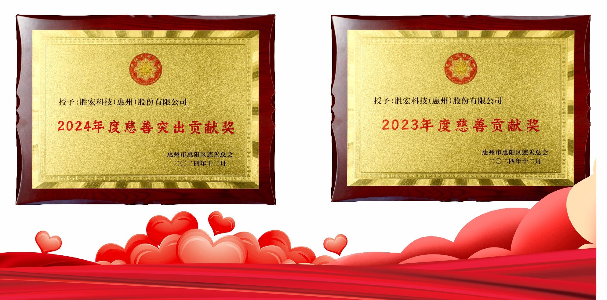 bbin宝盈科技荣获惠阳区2024年度“慈善突出贡献奖”和2023年度“慈善贡献奖”